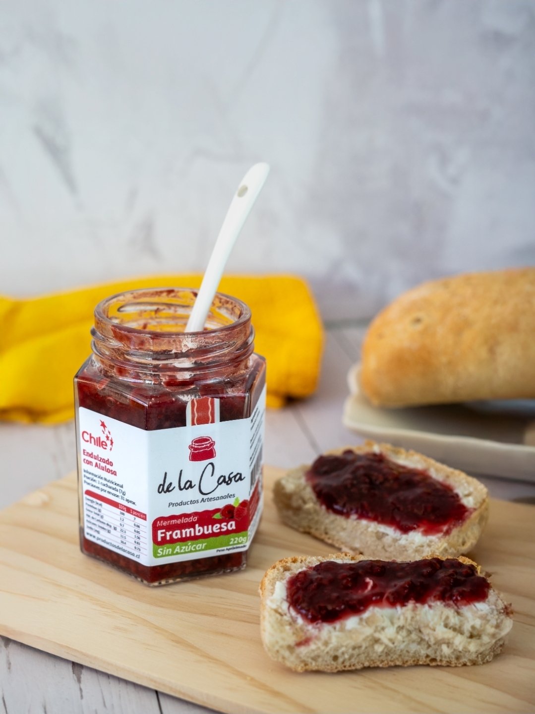 La mermelada de frambuesa sin azúcar es una deliciosa conserva elaborada a partir de frambuesas frescas, cocidas lentamente con alulosa, un edulcorante natural que tiene un impacto menor en los niveles de glucosa en sangre. El resultado es una mermelada dulce y afrutada, pero con un contenido de azúcar significativamente reducido en comparación con la mermelada tradicional.