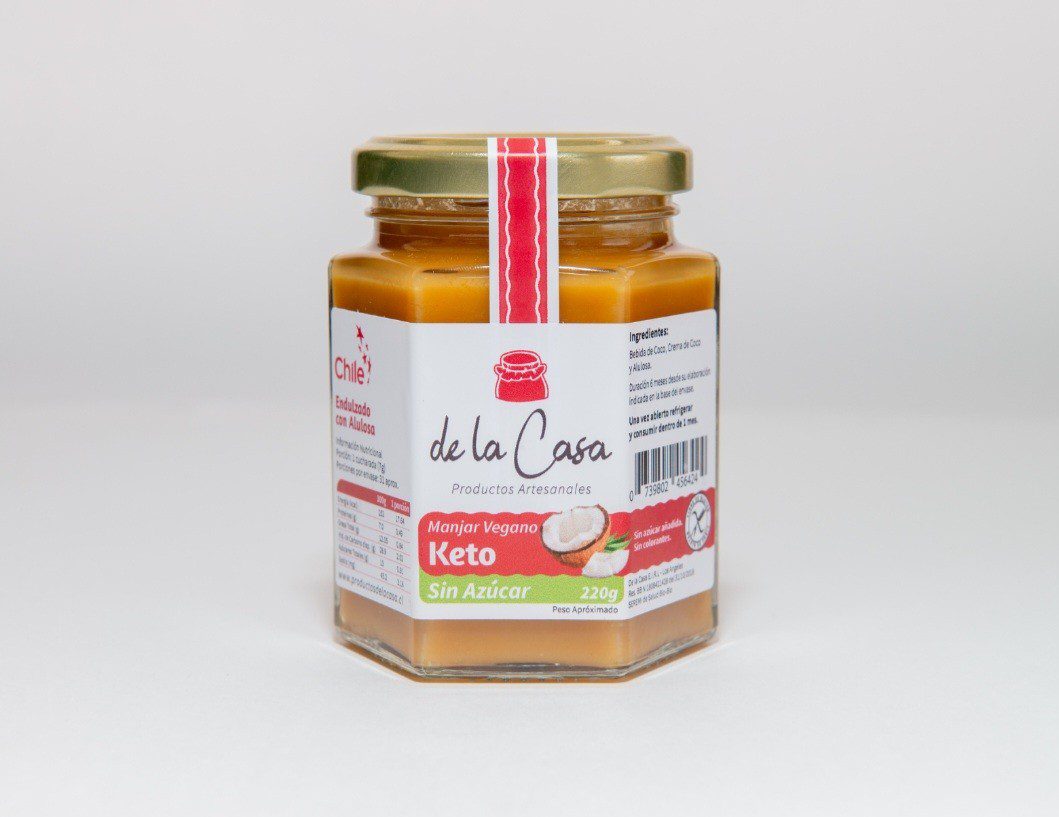 Manjar Keto Vegan, Hecho con bebida de coco y endulzado con alulosa, este manjar es libre de gluten, sin aditivos ni conservantes. Con un exquisito sabor a coco, es perfecto para aquellos que buscan una opción keto y vegana. Elaborado de manera artesanal, te hará disfrutar de un delicioso postre sin culpas