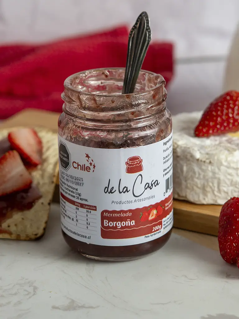 La mermelada de frutillas con vino tinto es una combinación deliciosa que combina la dulzura natural de las frutillas con el rico sabor y aroma del vino tinto. Esta mermelada suele tener un color rojo profundo y un sabor único que combina la acidez de las frutillas con los matices frutales y terrosos del vino tinto. Es perfecta para untar en pan tostado, acompañar quesos o incluso para usar como glaseado en postres de leche.