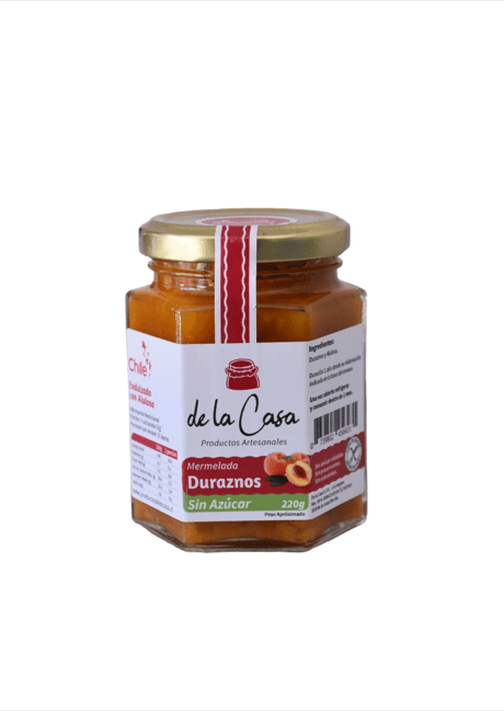 una deliciosa conserva elaborada a partir de duraznos conserveros y alulosa. Suele tener una textura suave con trozos pequeños de fruta y un color claro brillante. Es dulce y suave, intenso con el aroma de duraznos del verano