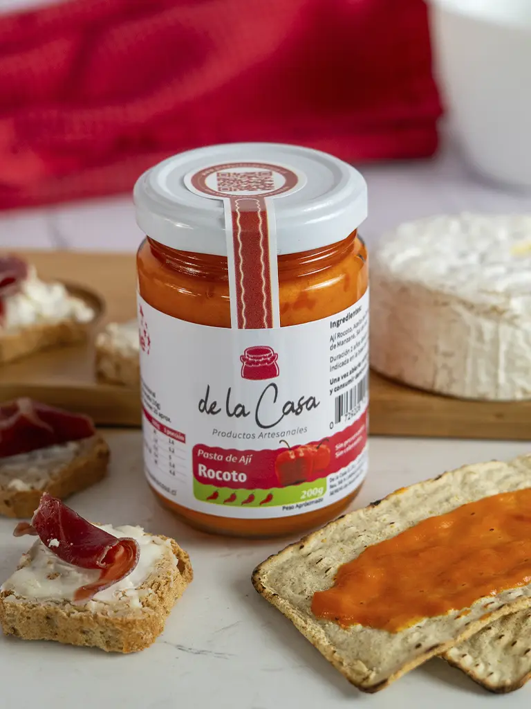 Pasta de ají, elaborada con ají rocoto. Es un ají de sabor intenso y característico, esencial para elaboración de algunos platos Peruanos, tiene un picor Alto (4 de 4).